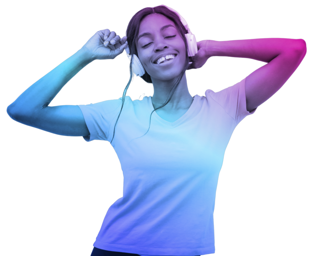 The on-ear, cushioned ear cups are adjustable, so you can customize your fit for all-day listening comfort.